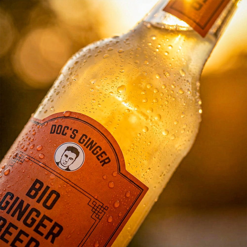 Unser Doc’s Ginger Bio Ginger Beer ist eine echte Besonderheit im deutschen Markt. Während viele Ginger Beers lediglich aus Aromen und Konzentraten gemischt werden, wird unser Doc’s Ginger Bio Ginger Beer tatsächlich handwerklich gebraut. Dieser Brauprozess verleiht dem Getränk mehr Tiefe, Charakter und ein vielschichtiges Aroma.